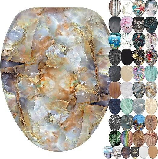 SANILO Wooden Toilet Seat with Soft Close [ELONGATED] - Decorative, Quiet & Slow Close Molded Wood Seat - With Strong Bumpers & Hinges - Adjustable Fit