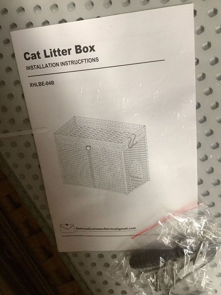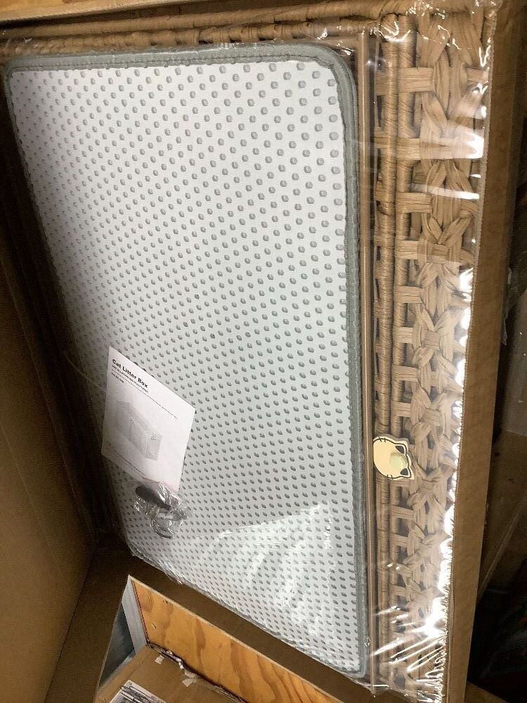 SETVSON Cat Litter Box Enclosure Furniture, Hidden Litter Box with Mat and Fence, Handwoven Rattan Cat House with Two S-Shaped Hooks for Living Room, Bedroom