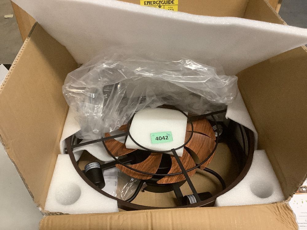SHLUCE 19" Farmhouse Flush Mount Caged Ceiling Fans with Lights, 6 Speeds, Rustic Low Profile Ceiling Fan with Light and Remote, Small Bladeless Ceiling Fans with Lights for Kitchen, Bedroom - ETL