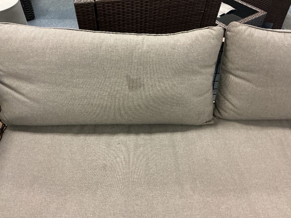 Article, Outdoor Sofa, Small Stain On Pillow, Repair On Front Leg, E-Comm Return/Damaged