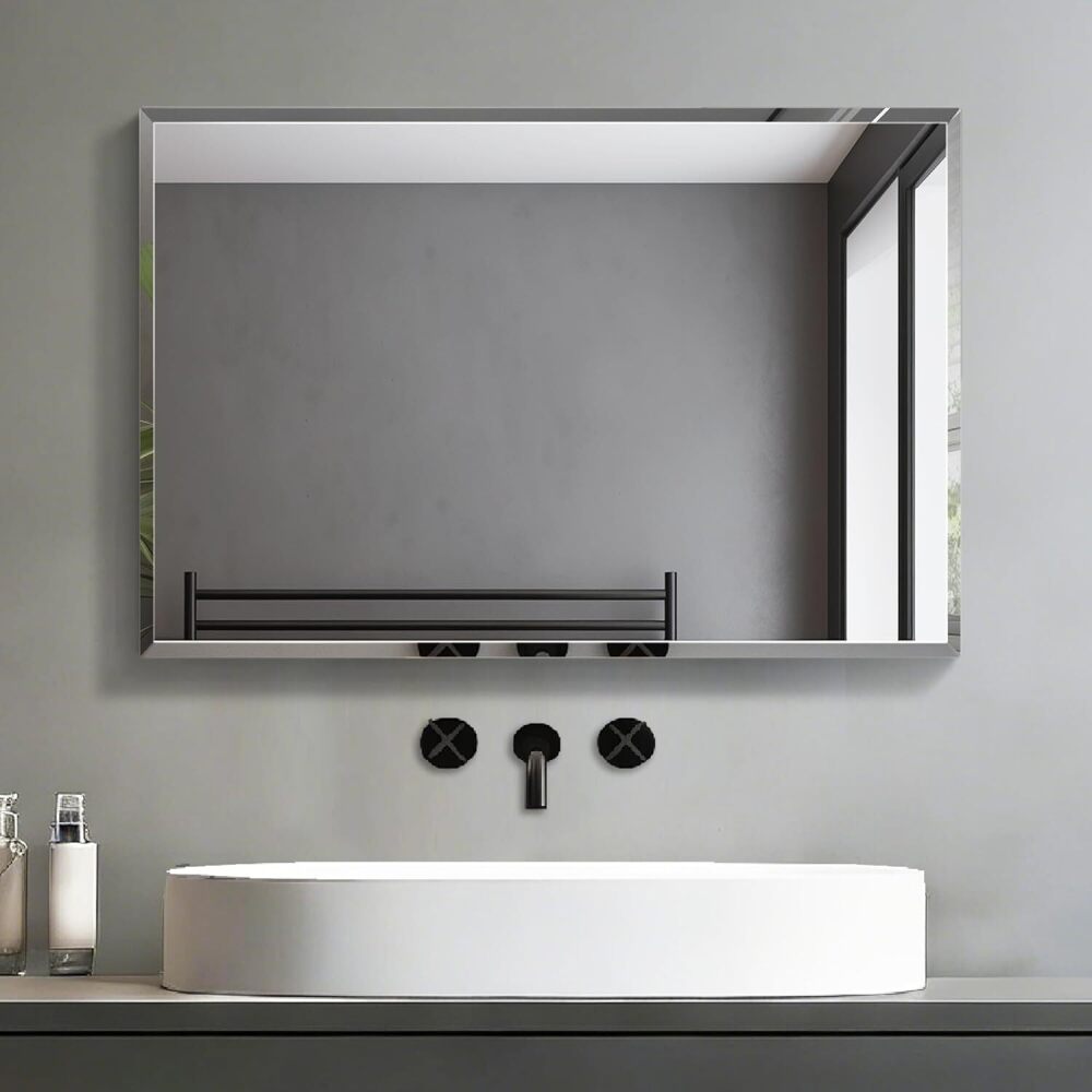 1 PCS Beveled Polished Edge Frameless Bathroom Mirror Rectangle Wall Mount Vanity Mirror for Bathroom,Bedroom,Entryway,Over Sink,Living Room (16×14-1PCS)