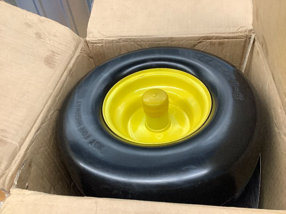 13x6.50-6 Lawn Mower Tires Flat Free Tire and Wheel with Rim, Solid Smooth Rubber for Zero-Turn Mowers, 5.5"-7.72"Centered Hub and 3/4" extra 5/8" 1/2" Bushings(Yellow)