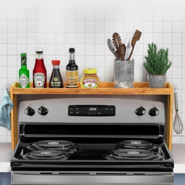 IIIOIIIA Bamboo over the Stove Spice Shelf for Kitchen Storage, 31.5"