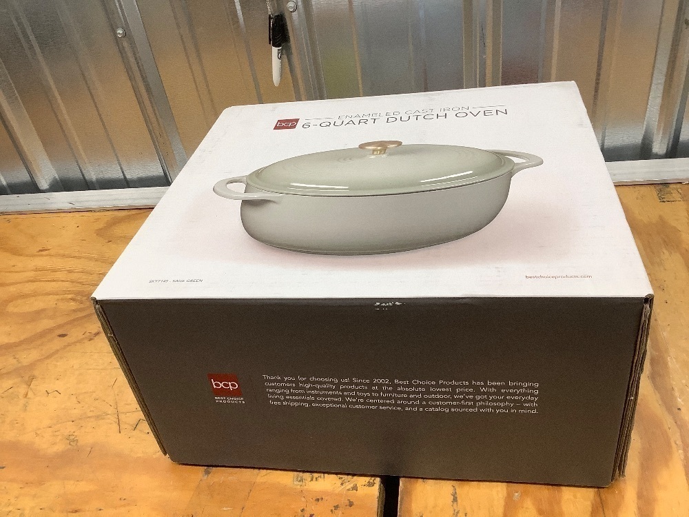 Quart Enamel Cast-Iron Round Dutch Oven, Family Style Heavy-Duty Pre-Seasoned Cookware for Home, Kitchen, Dining Room, Oven Safe w/Lid, Dual Handles - Sage Green