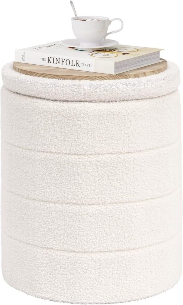 Round Storage Ottoman Foot Rest Stool with Tray Velvet Sherpa Folding Storage Ottoman,Boucle Foot Rest for Living Room, Bedroom, Dorm