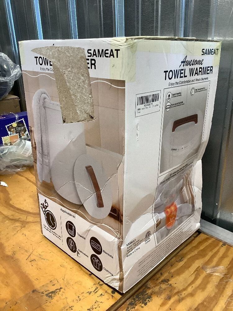 SAMEAT Heated Towel Warmers for Bathroom - Large Towel Warmer Bucket, Wood Handle, Auto Shut Off, Fits Up to Two 40"X70" Oversized Towels, White
