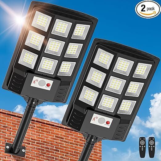 Solar Lights Outdoor,IP66 Waterproof Solar Street Lights Outdoor,6500K LED Dusk to Dawn Security Flood light with Motion Sensor and Remote Control for Yard,Parking Lot, Courtyards,Garages