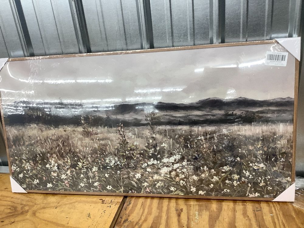 Vintage Framed Meadow Landscape Wall Art