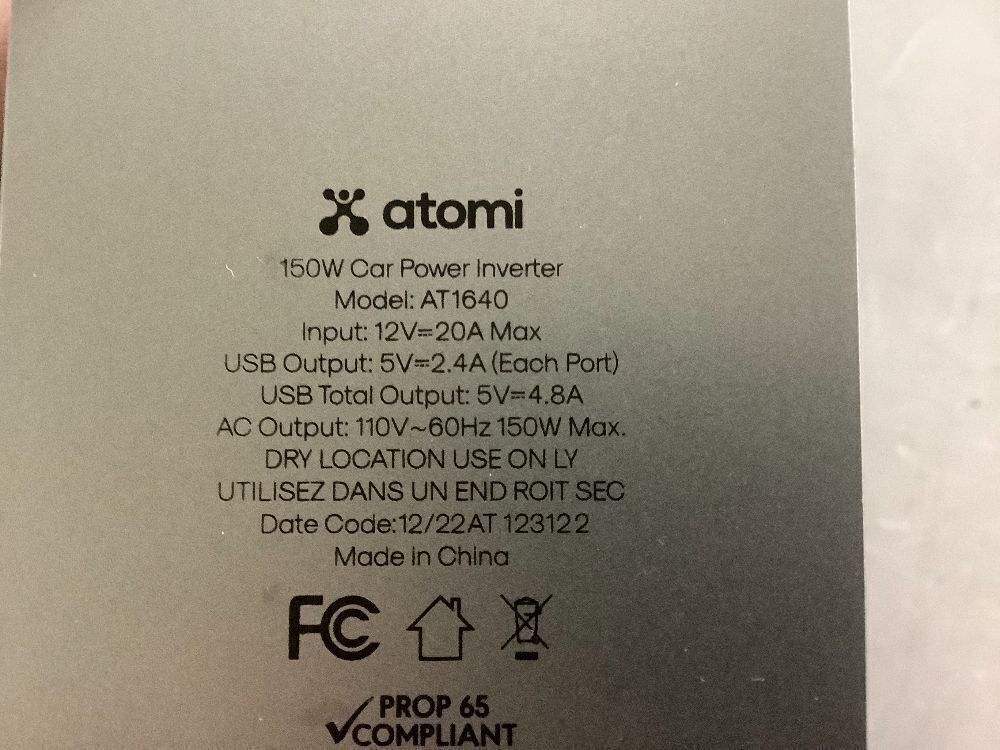 Atomi 150W Car Power Inverter