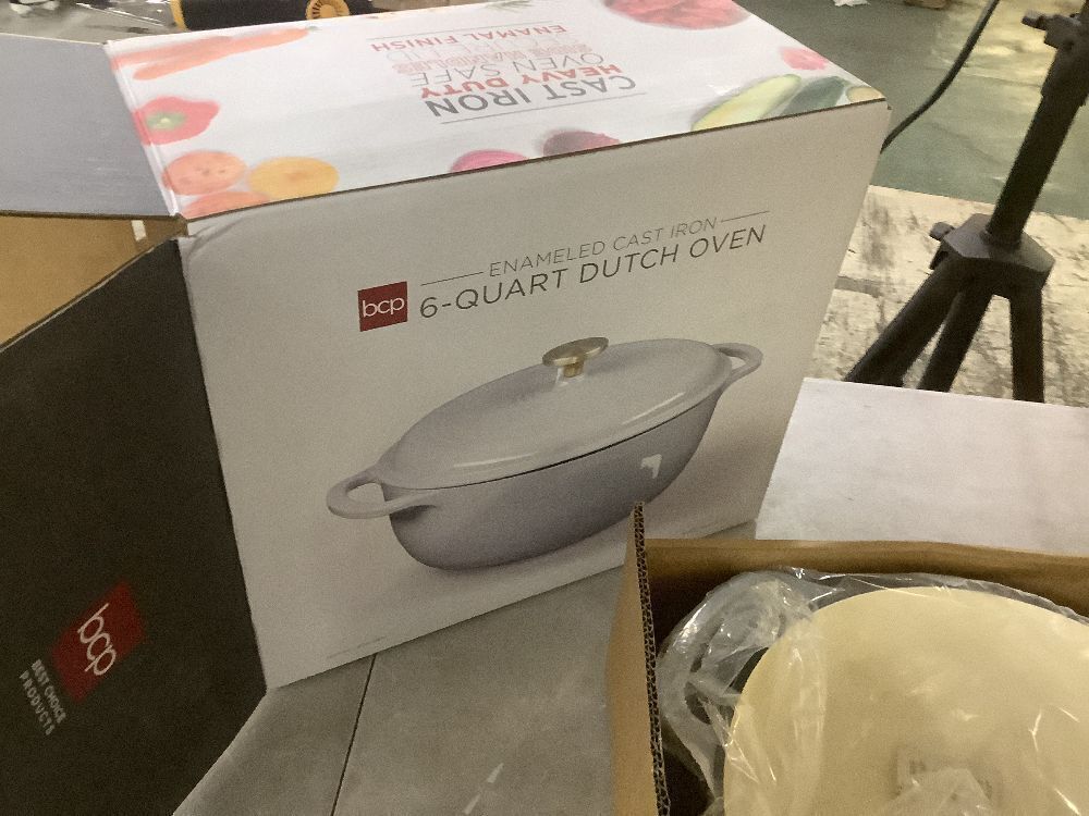 Cast-Iron Dutch Oven Kitchen Cookware w/ Enamel, Handles - 6qt