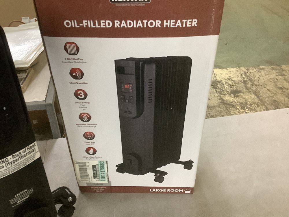 Konwin 1500-Watt Black Indoor Electric Oil-Filled Radiator Convection Radiant Space Heater with Remote Control