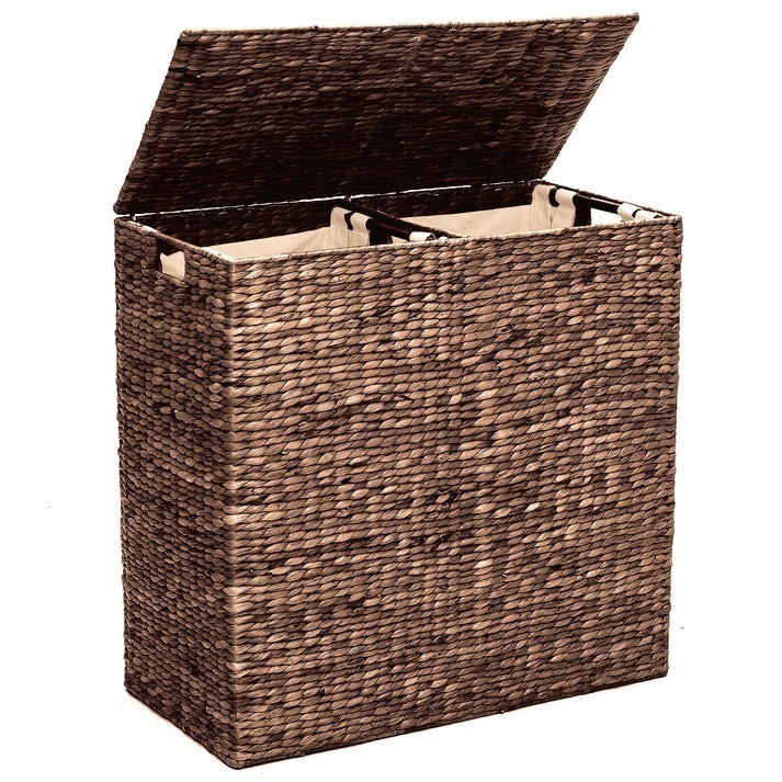 Large Water Hyacinth Double Laundry Hamper Basket w/ 2 Liner Bags