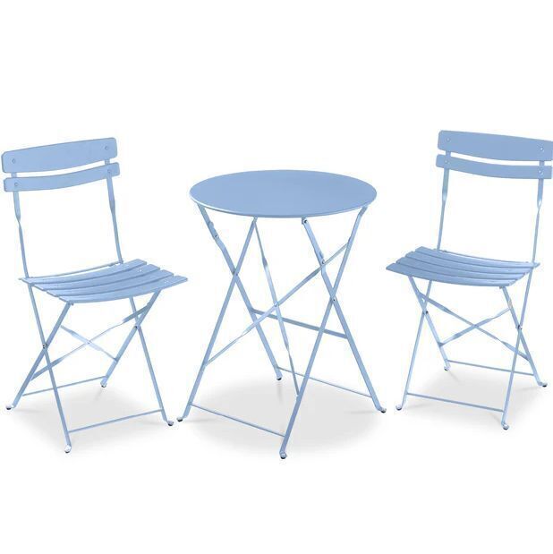 3-Piece Small Folding Patio Bistro Set w/ 2 Chairs