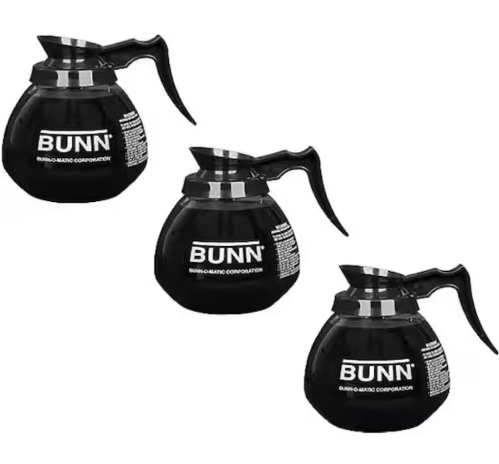 Bunn 12-Cup Commercial Glass Decanter with Black Handle, (3 pack)