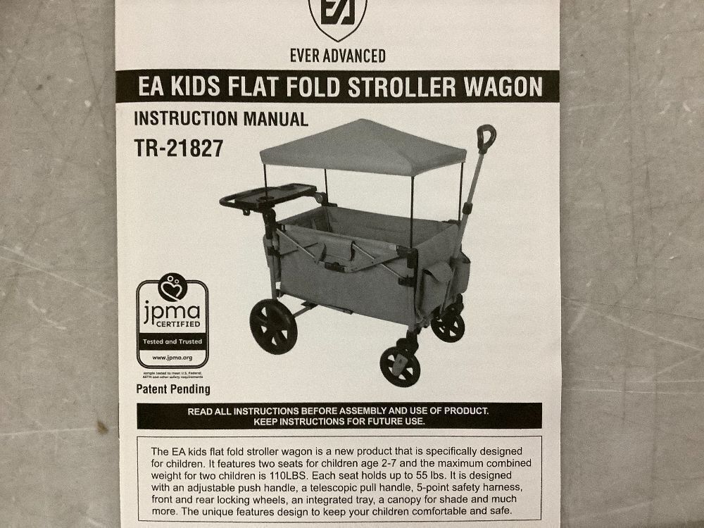 EVER ADVANCED Foldable Stroller Wagon for Two Kids & Cargo