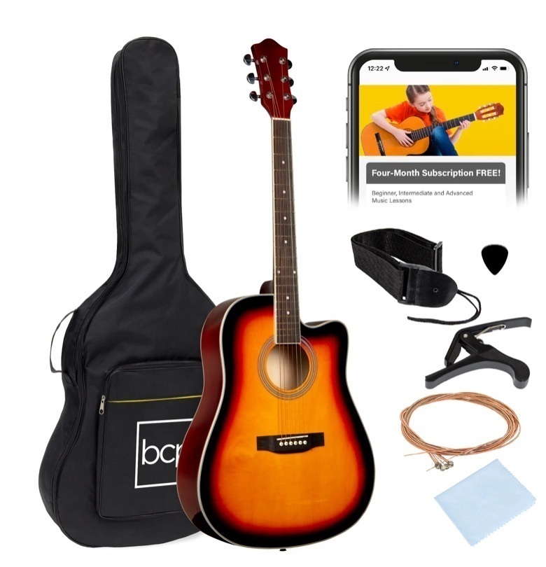 Full Size Beginner Acoustic Guitar Set with Case, Strap, Capo - 41in