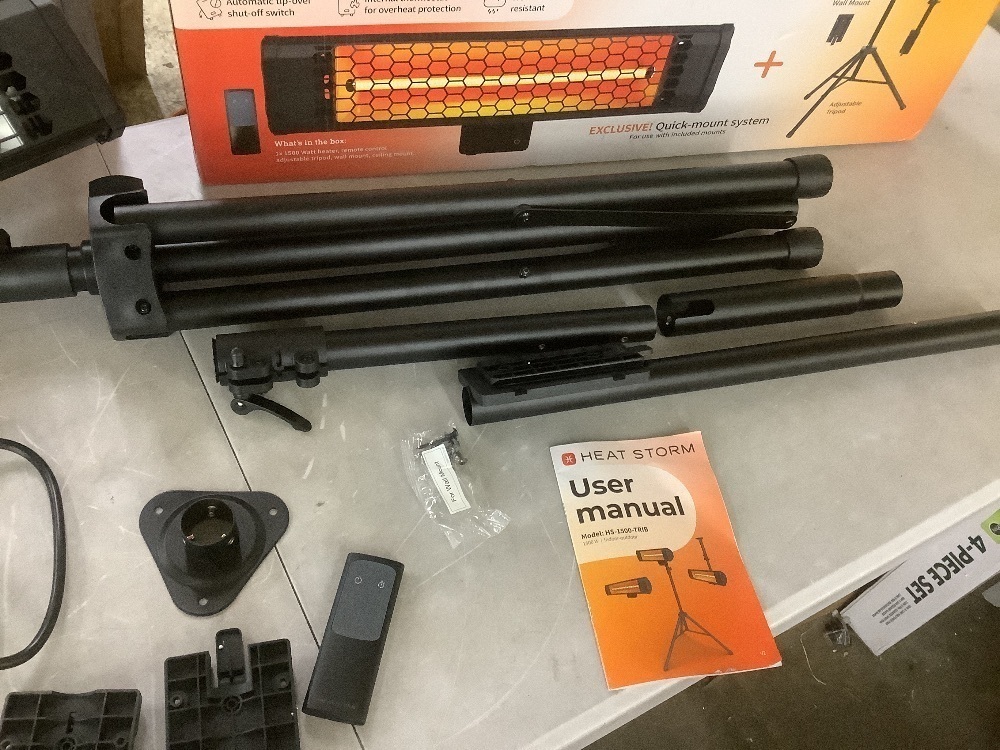 Heat Storm Tradesman 1500-Watt Electric Indoor/Outdoor Quartz Infrared Portable Space Heater w/Tripod Wall and Ceiling Mount, Black