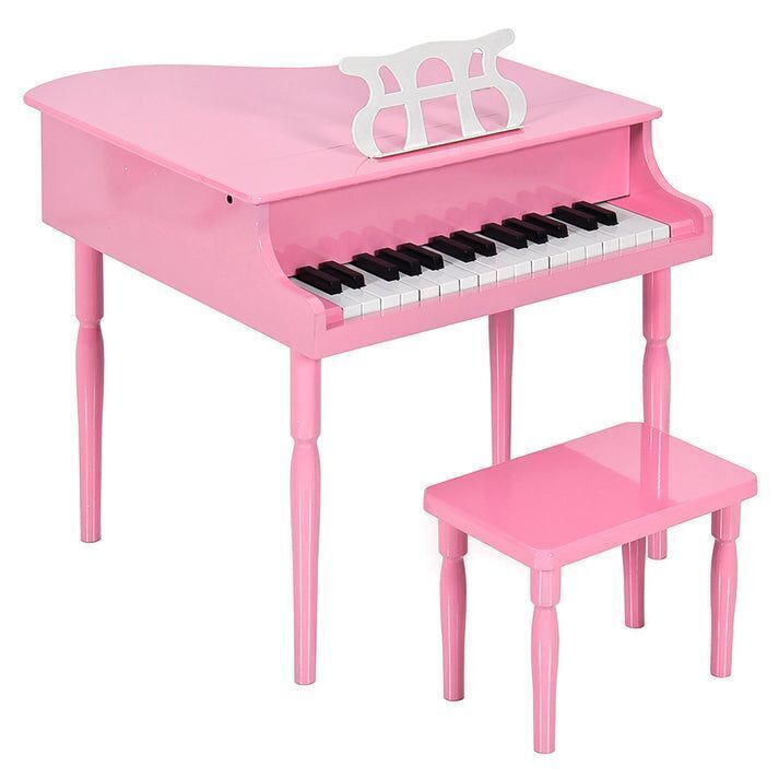 Kids Mini Wooden Grand Piano w/ Lid, Bench, Music Rack, Song Book