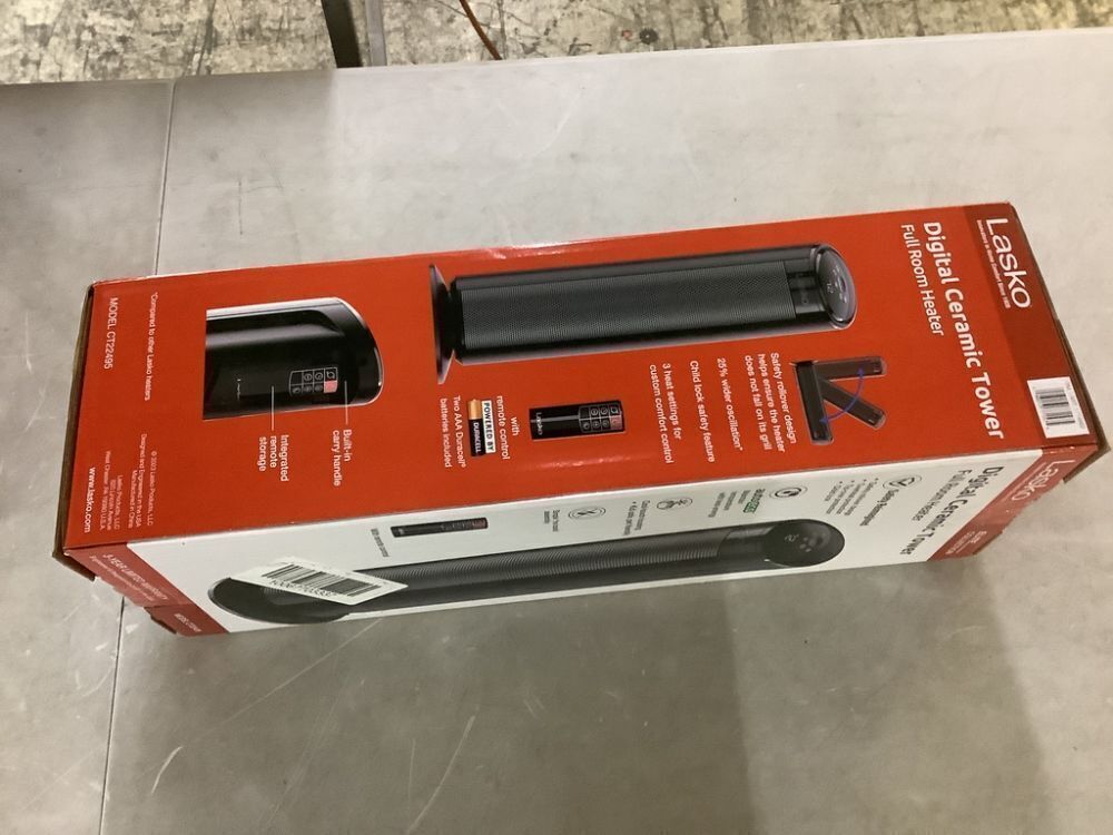Lasko 1500W 22 in. Black Indoor Electric Tower Ceramic Forced Air Ceramic Space Heater with Child Lock, 3-Speeds, and Remote