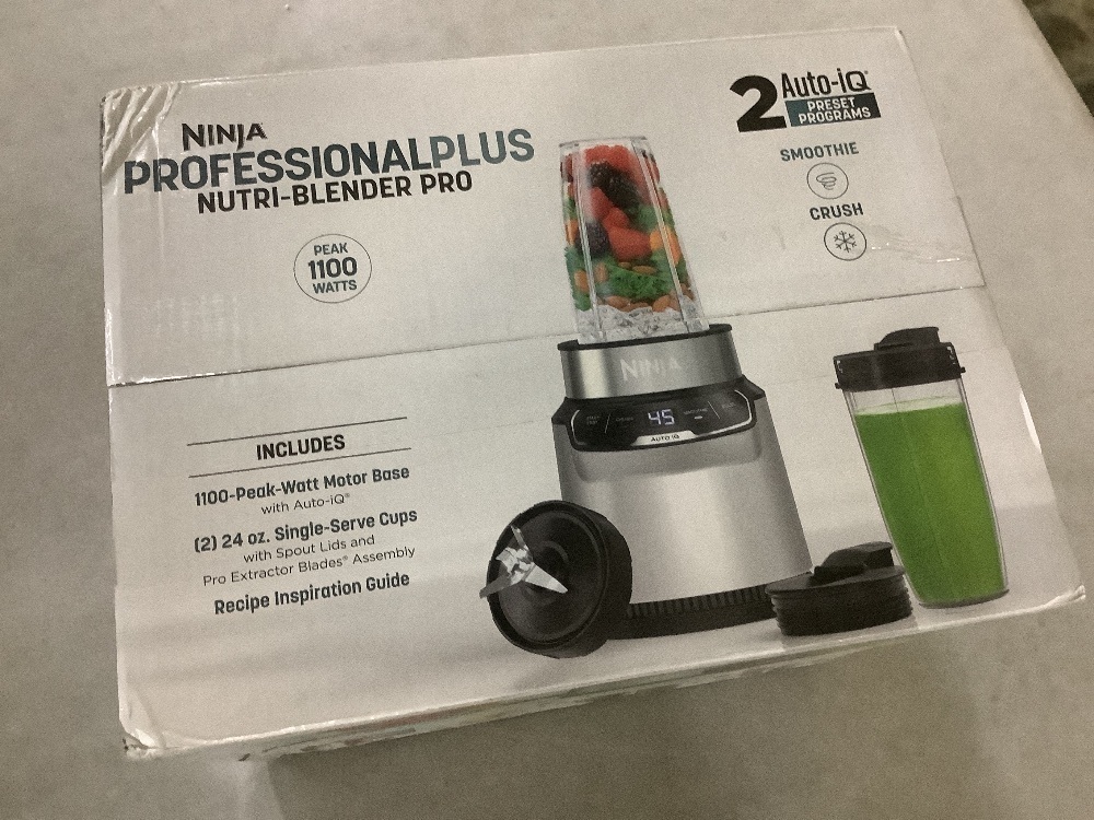 Ninja Nutri Blender Pro Silver 24 oz. with 2 Speed Auto iQ, 1100 Peak Watt, Dishwasher Safe Parts & On the Go Personal Blender
