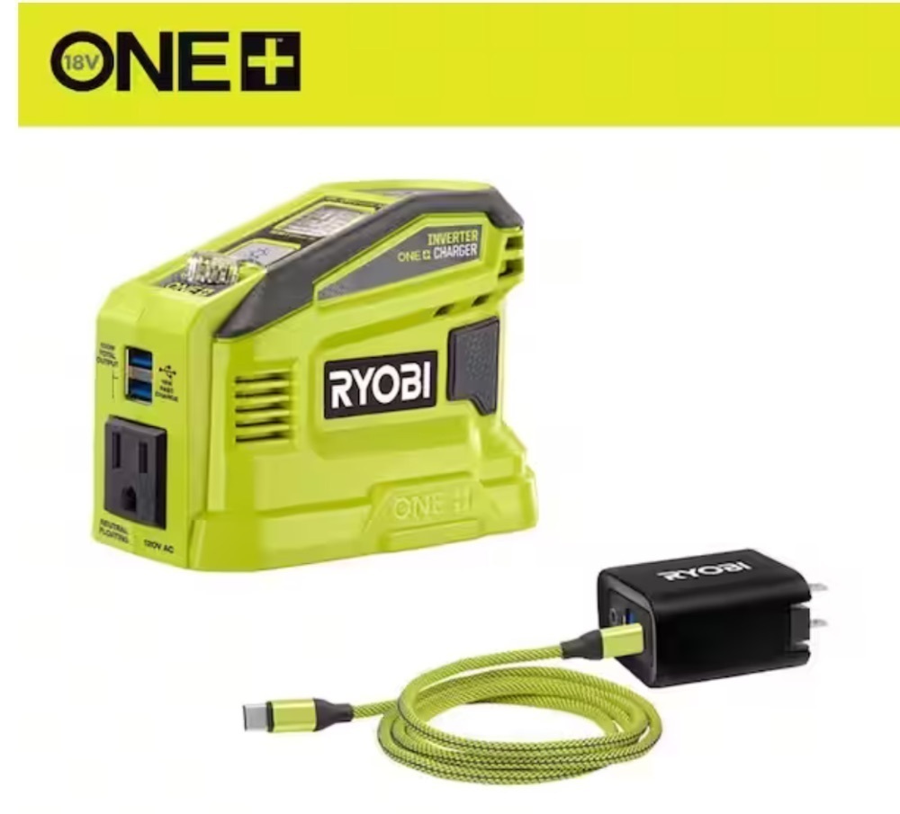 Ryobi 18V ONE+ 150-Watt Portable Battery Inverter Power Source and Charger for 18V ONE+ Batteries (Tool Only)