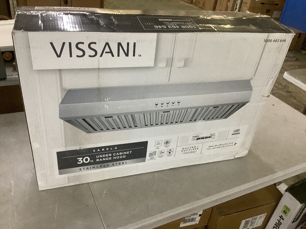Vissani Sarela 30 in. W x 7 in. H 500CFM Convertible Under Cabinet Range Hood in Stainless Steel with LED Lights and Filter
