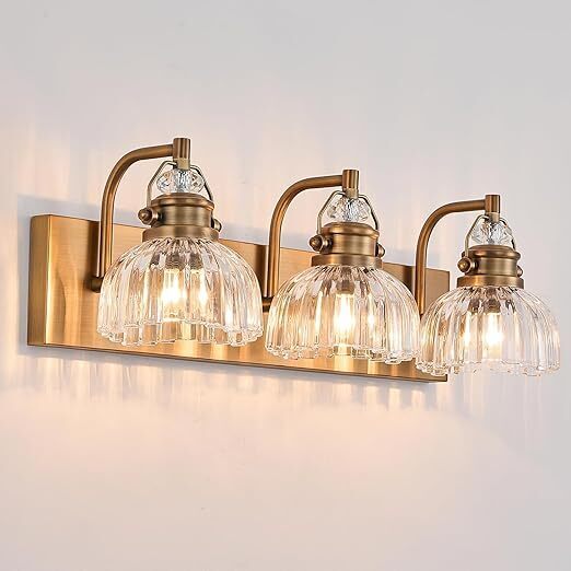 22.83 Inch Vintage 3-Light Vanity Light for Bathroom Brushed Brass Lighting Rustic Vanity Light for Mirror, Farmhouse Bathroom Lighting Fixture(Rust-Proof, Easy Install, Exclude Bulb)