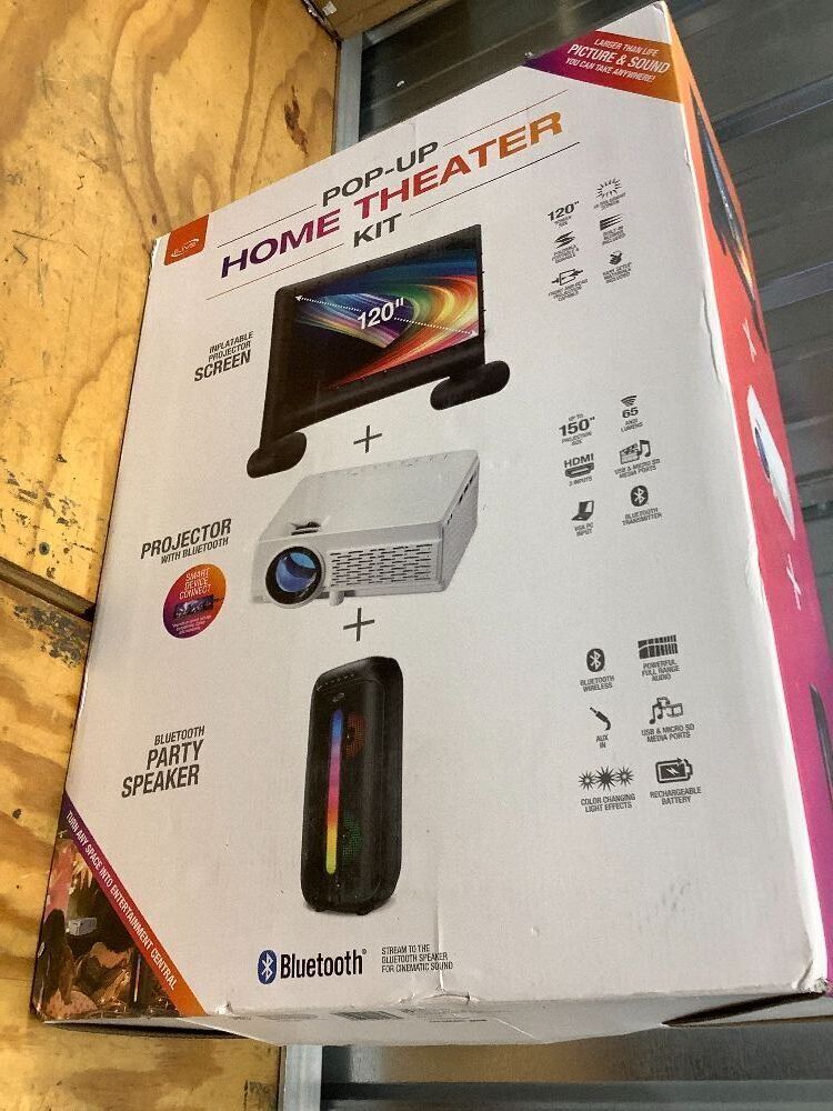 iLive Pop-Up Movie Theater Kit, Projector, Inflatable Projection Screen, and Bluetooth Speaker