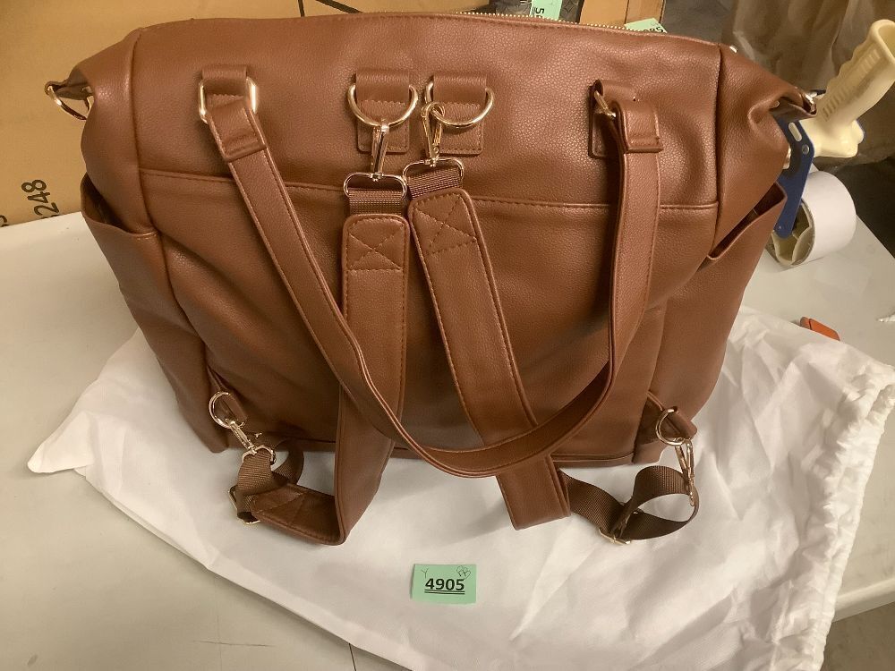 Large Diaper Bag Backpack, Vegan Leather Diaper Travel Tote Bag with Changing Pad and Stroller Straps