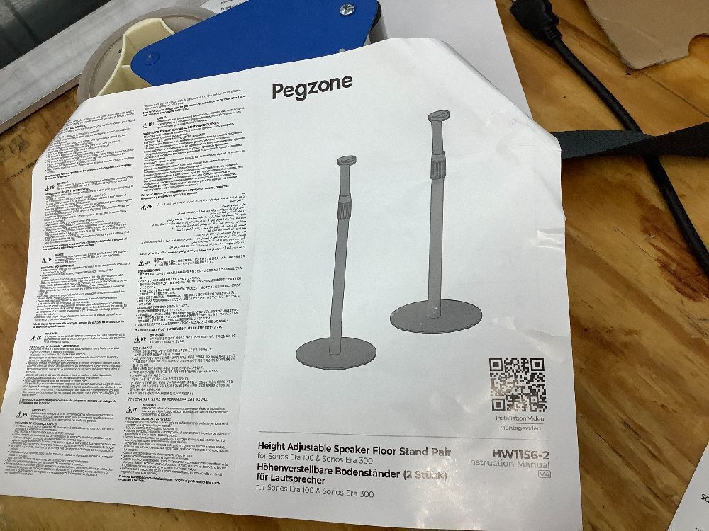 PEGZONE Adjustable Height Speaker Stands Compatible with SONOS Era 300 and Era 100, Height Adjustable up to 42.6'', Floor Stands with Cable Management, Speaker Mount, Black, 2 Pack (Pair)