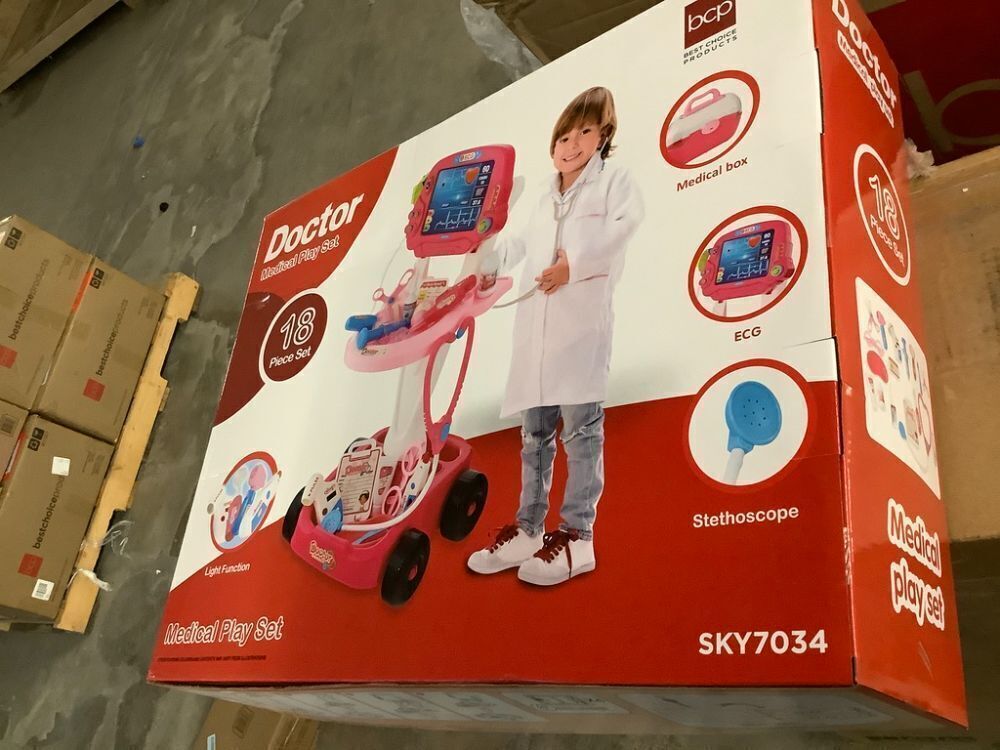 Play Doctor Kit For Kids, Pretend Medical Station Set With Carrying Case, Mobile Cart - Pink