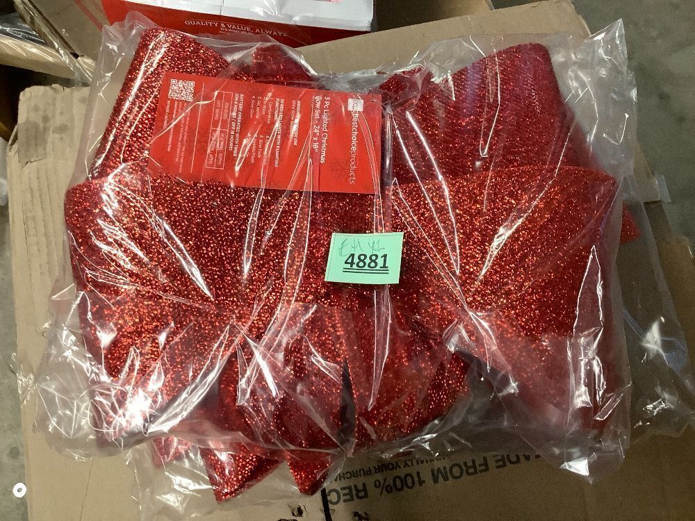 Set of 3 Pre-Lit Christmas Bow Decoration, LED Holiday Decor w/ 8 Functions