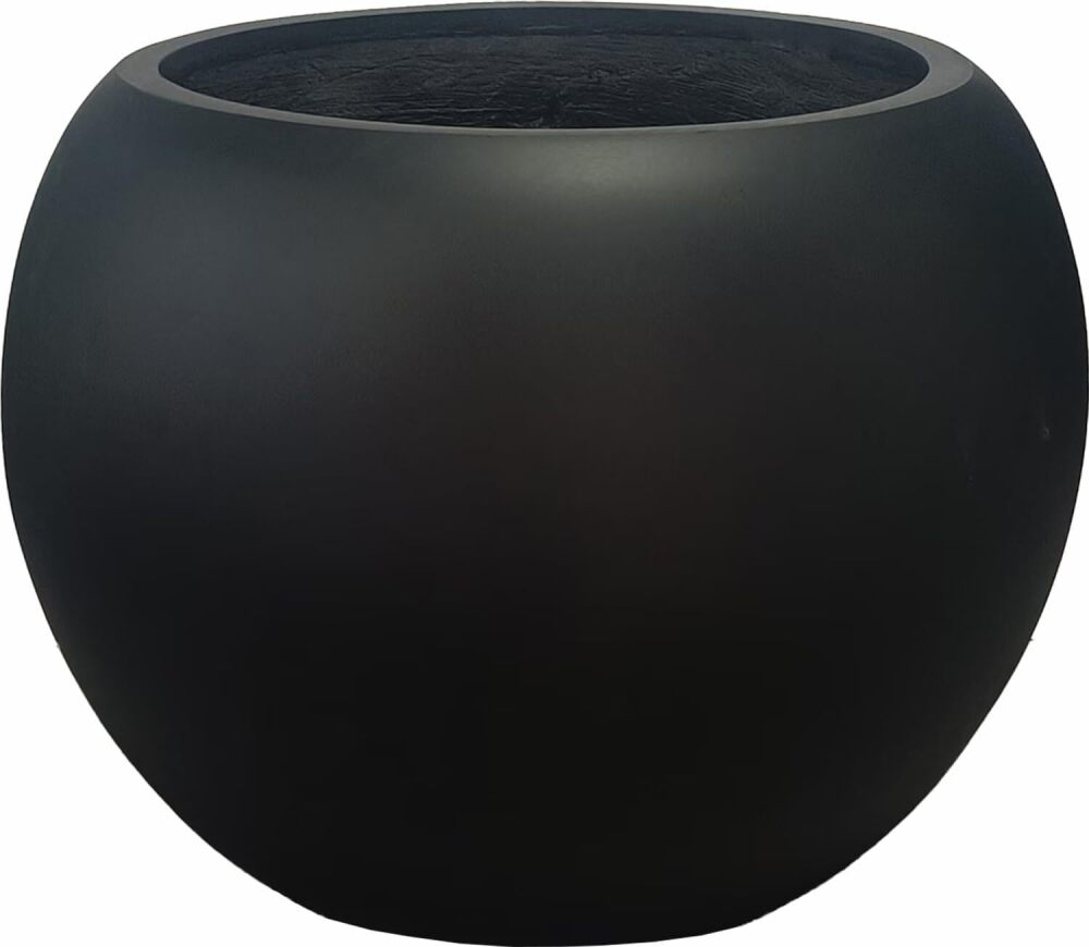 12" Pot Opening Round Fiberstone Planter with Drainage Hole, Black, Indoor/Outdoor Large Plant Pot for Home Patio Garden, Ideal for Large Plants