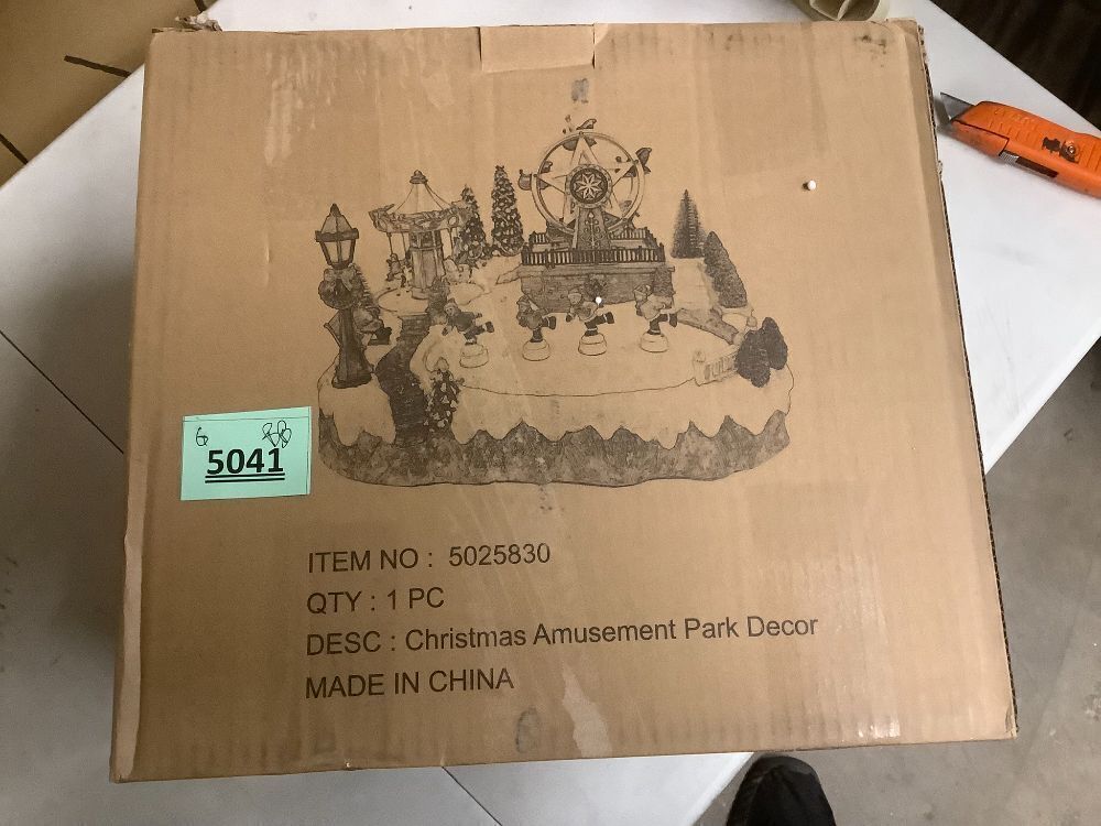 Christmas Village Amusement Scene Decor LED Lighted Ferris Wheel/Ice Skate Festive Tabletop Ornament Holiday Decor Customizable