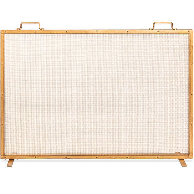 Single Panel Handcrafted Steel Mesh Fireplace Screen w/ Handles - 38x27in