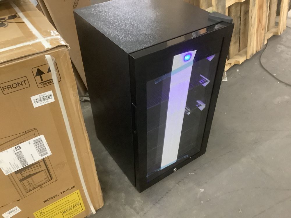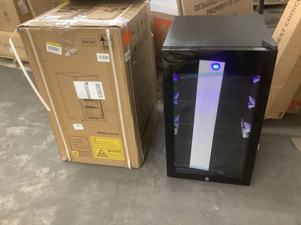 18.89 in.Black Single Zone Freestanding 130-Cans Stainless Steel Beverage Cooler with Low-E Glass Door, Safety Lock - Small Dent Back Right Corner