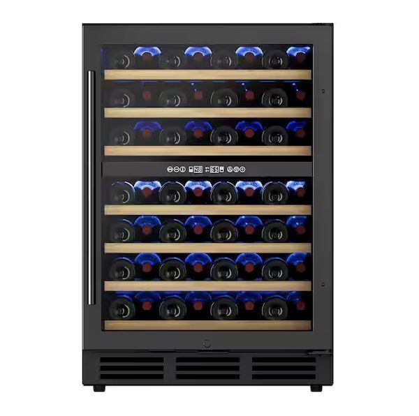 23.5 in. Dual Zone 54-Bottle Undercounter/ Freestanding Wine Cooler in Black with Reversible Door, Removable Shelves