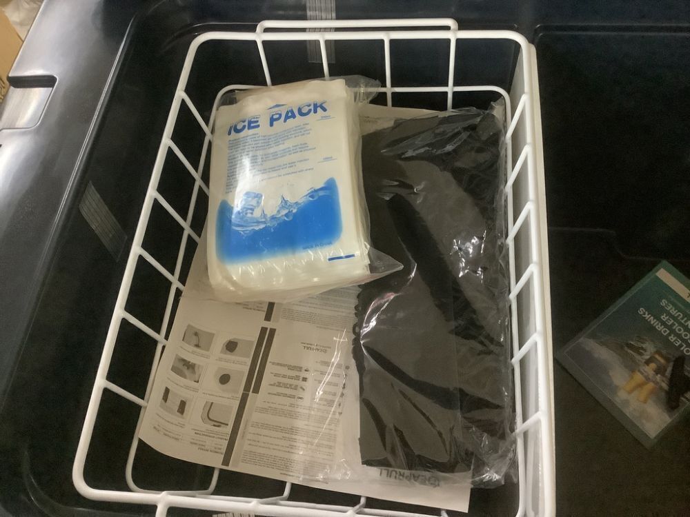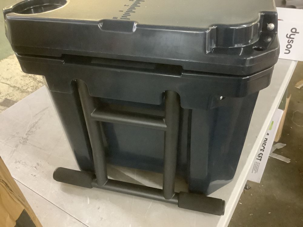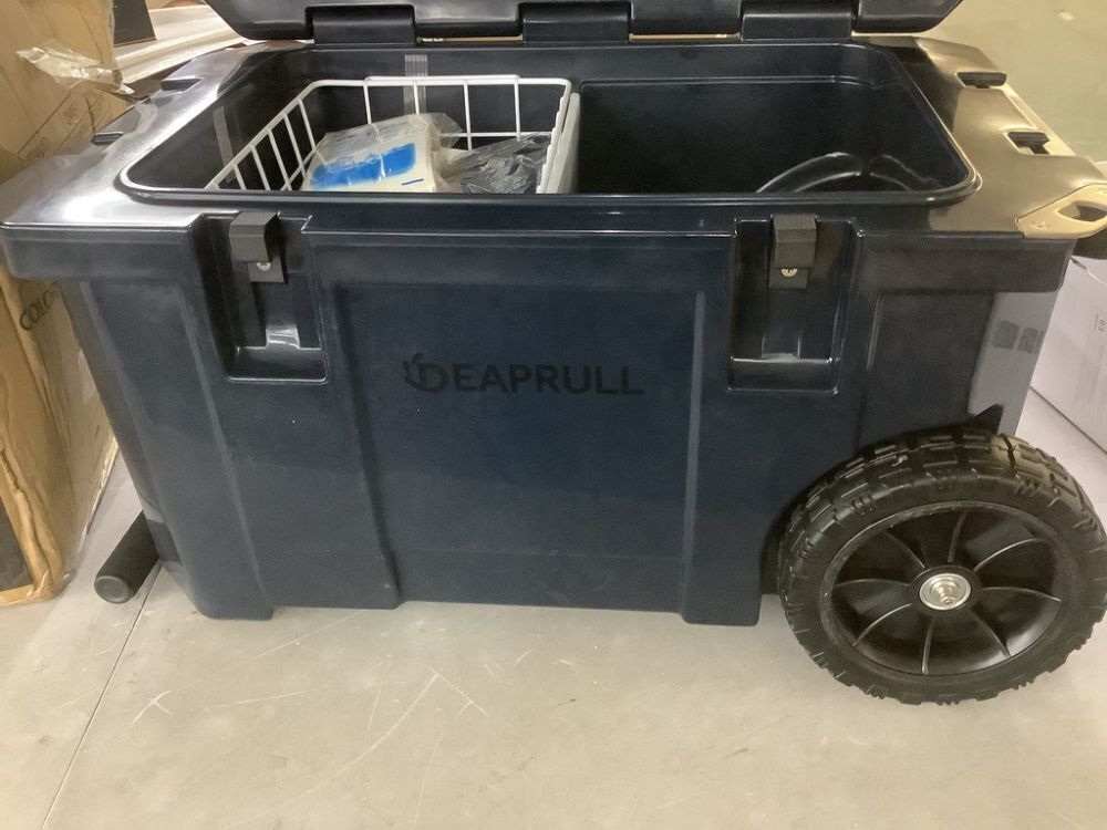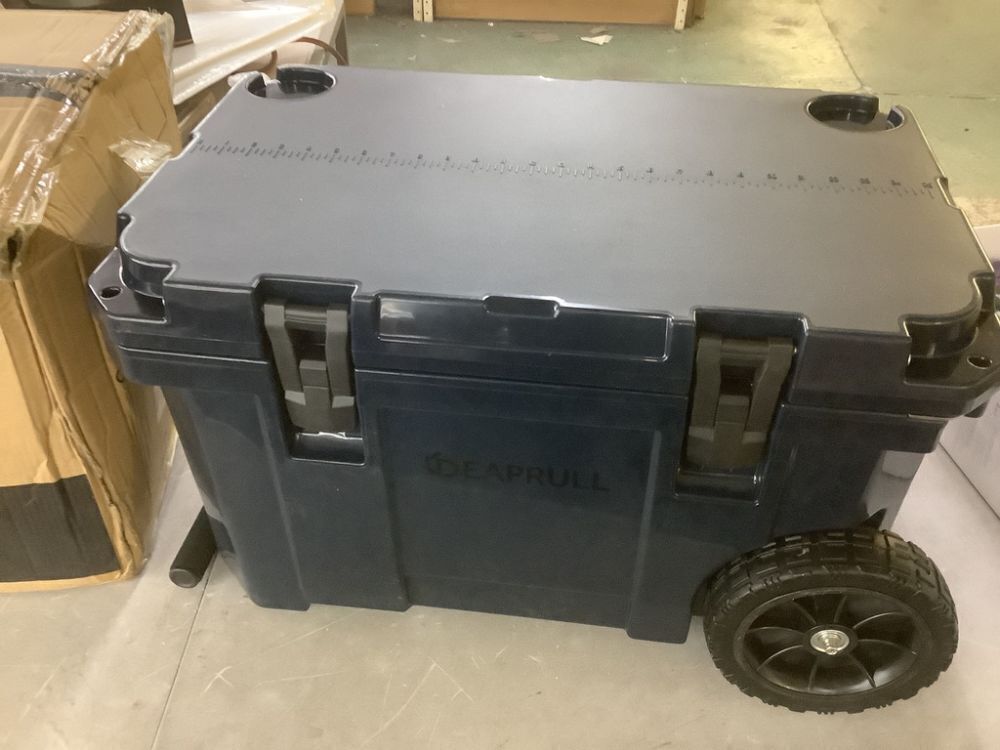 27.in. 55-Quart Cooler with Wheels, Warming Drawer, Leak-Proof Outdoor Insulated Cooler with Handle, Cup Holders, Blue