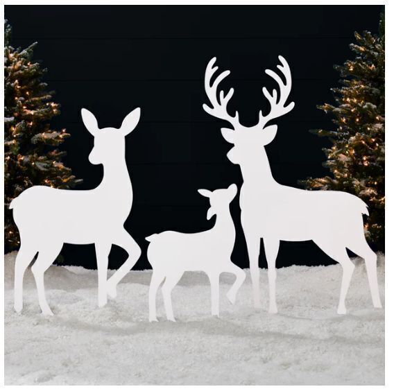 3-Piece 2D Deer Family Silhouette Yard Decoration w/ Buck, Doe, Fawn - 46in