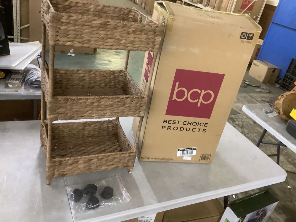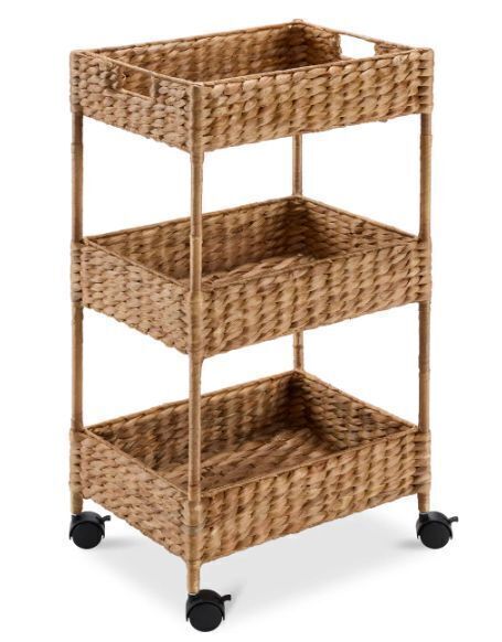 3-Tier Water Hyacinth Rolling Utility Cart w/ Weaved Baskets