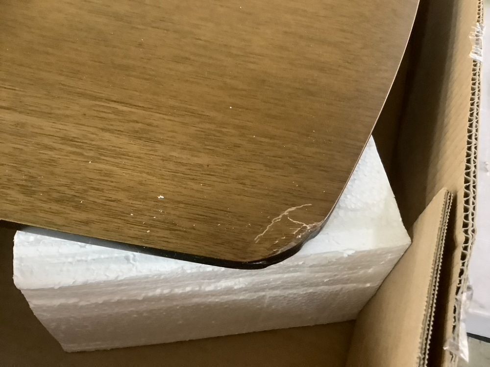 4-Piece Mid-Century Modern Upholstered Wooden Dining Set w/ 2 Chairs, Bench - Table has Minor Damage
