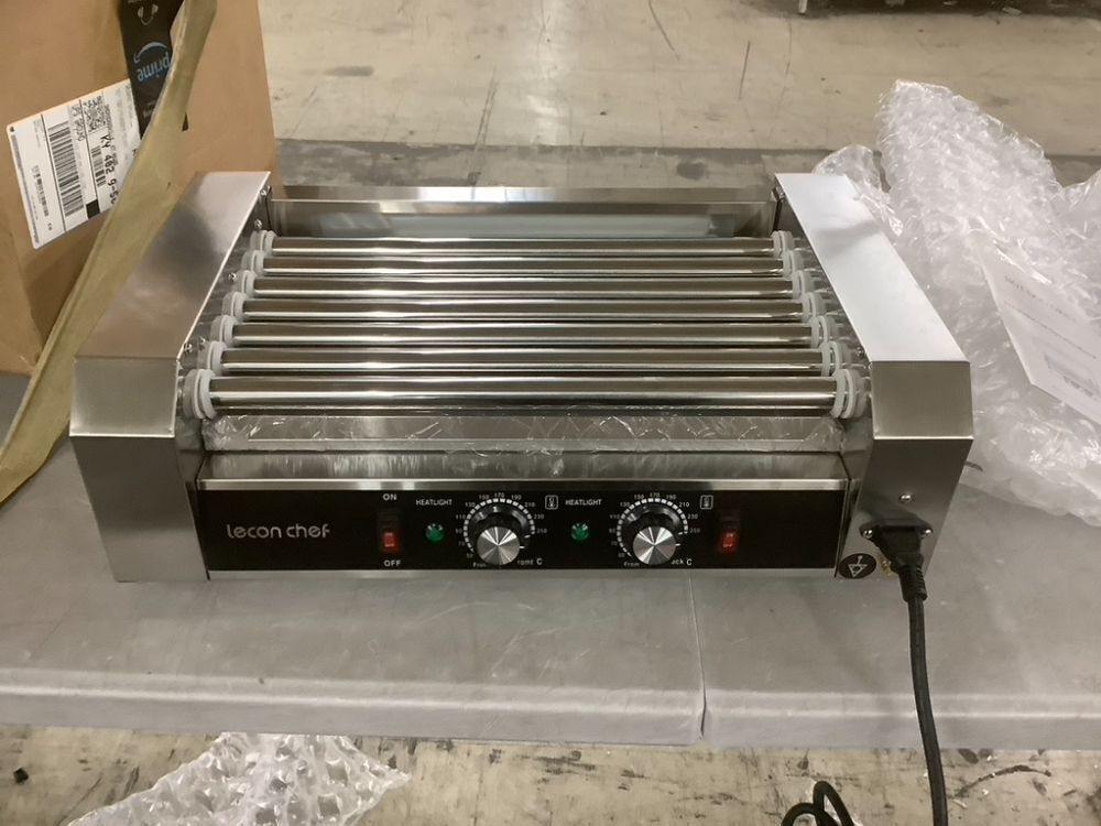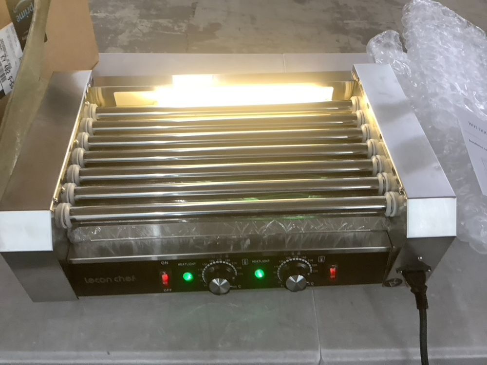 Commercial Electric 7 Roller Hot Dog Machine, Dual Temp Control, Detachable Glass Cover & LED