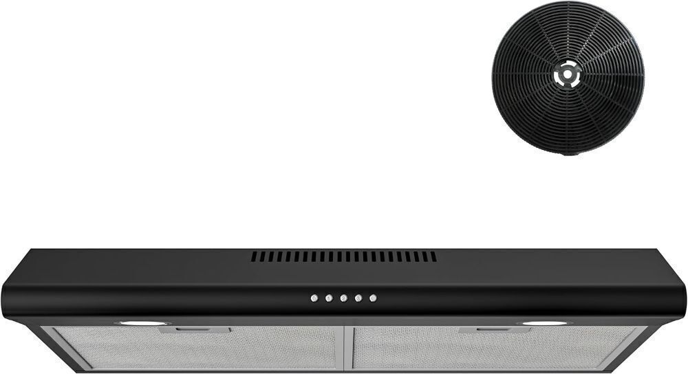 FIREGAS 30 Inch Black Under Cabinet Range Hood, Ducted/Ductless Convertible with LED Light, 3-Speed Exhaust Fan, Push Button Control