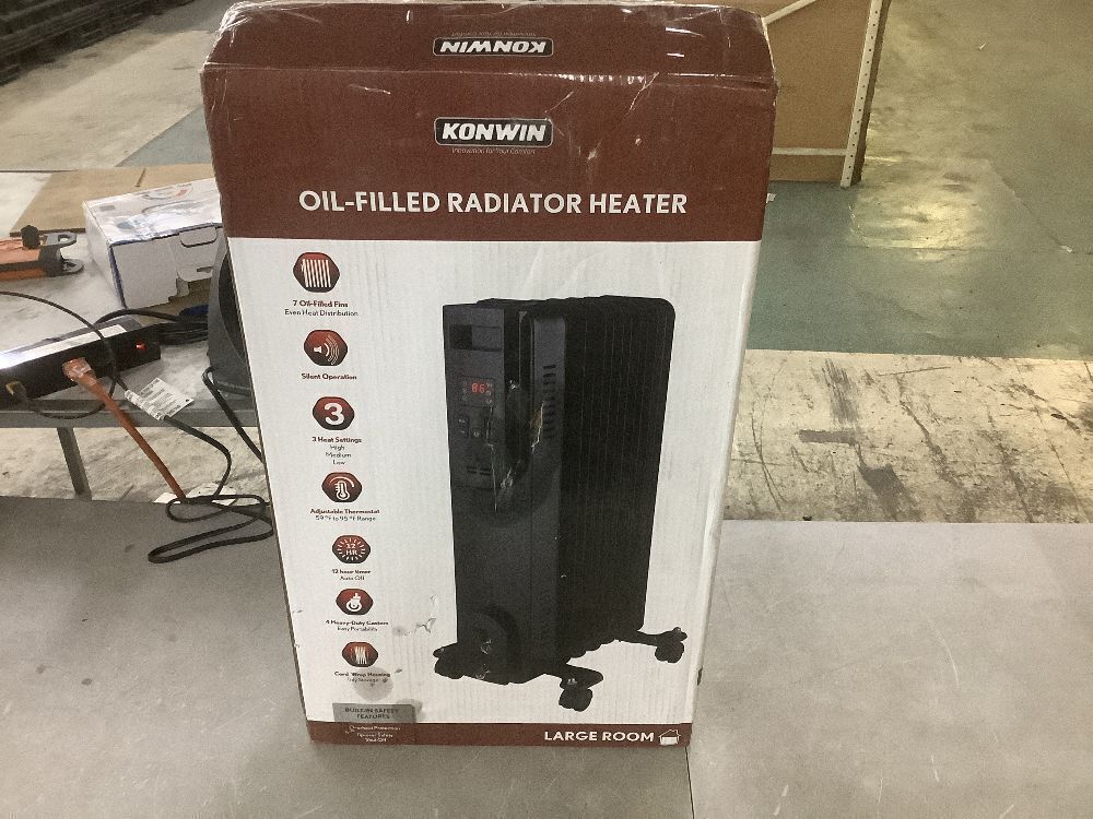 Konwin 1500-Watt Black Indoor Electric Oil-Filled Radiator Convection Radiant Space Heater with Remote Control