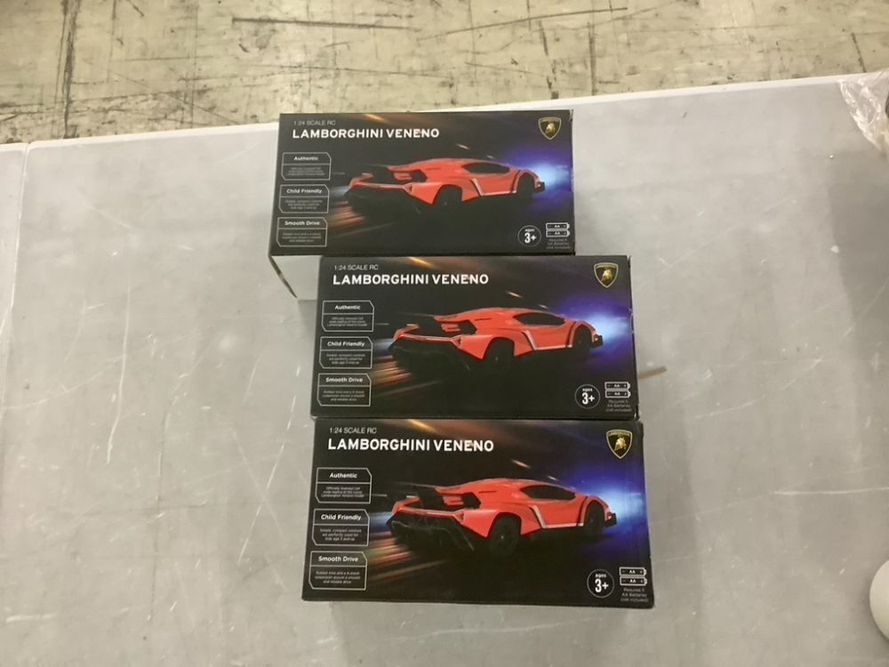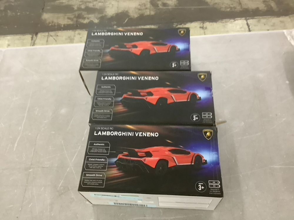 Lot of (3) 1:24 Scale Kids Licensed RC Lamborghini Veneno Car, Head and Taillights - 2 Red & 1 Green