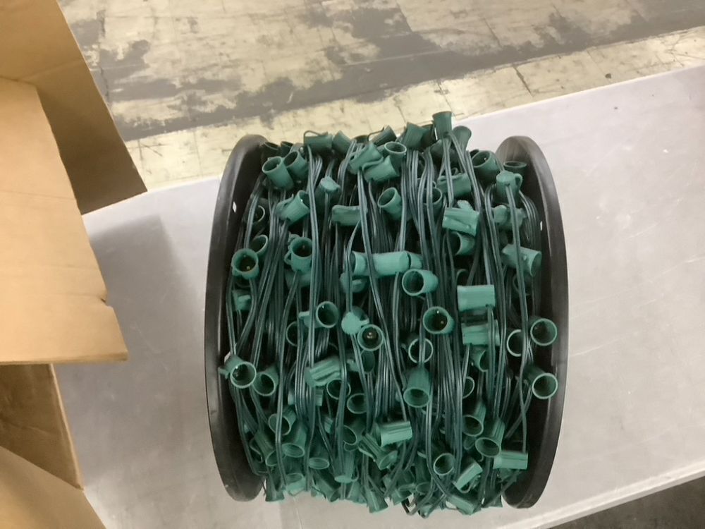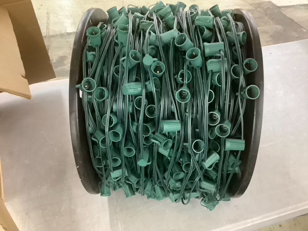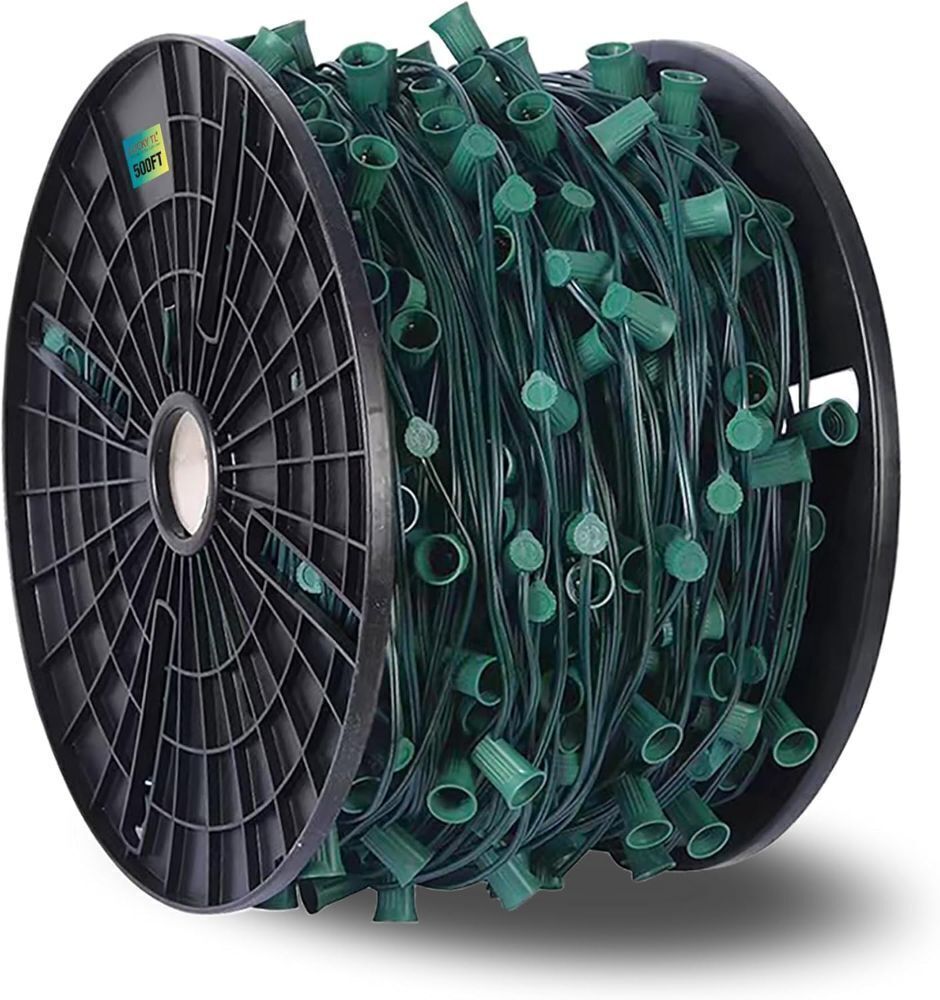 LUCKY TL 500 FT C9/E17 Christmas Light Sockets Spool Set, Green SPT-1 Wire, 12 Inch Spacing