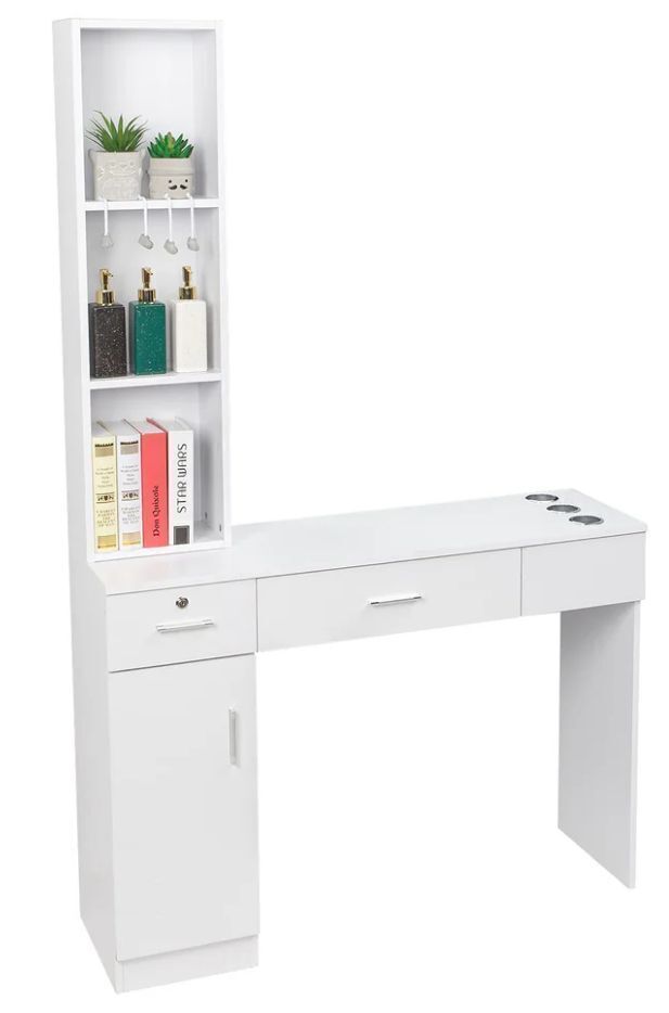 OmySalon Barber Station Wall Mount 2 Drawers 1 Storage Cabinet 3 Open Shelves