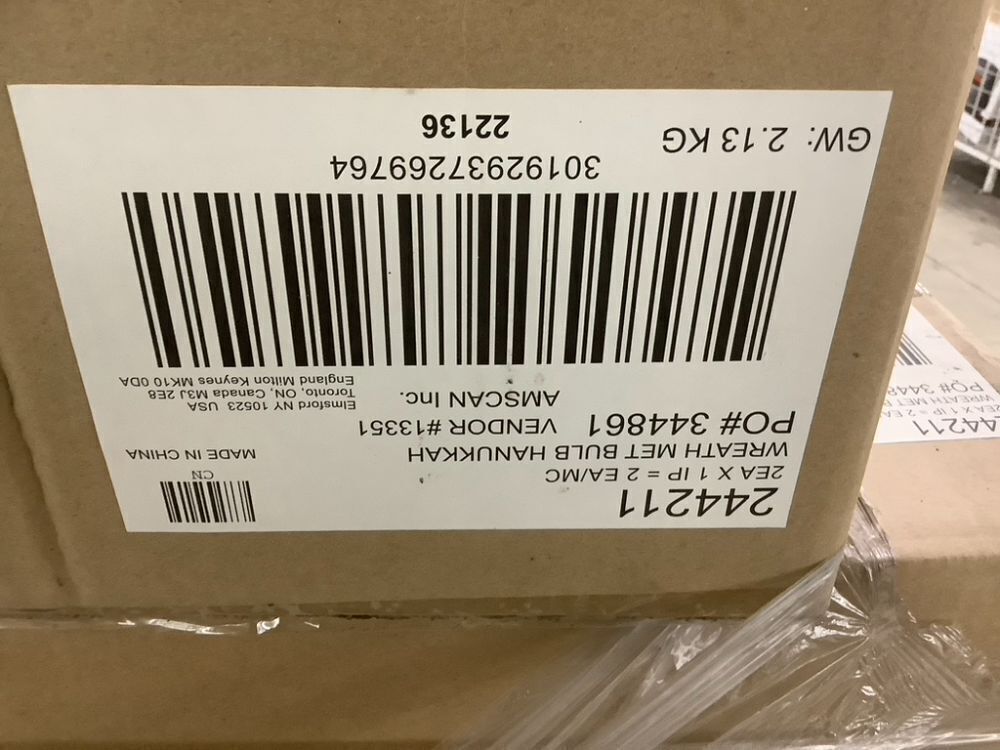Pallet of (28) Cases of Hanukkah Metallic Bulb Wreath, 2 per Case
