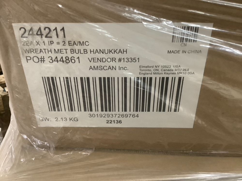 Pallet of (28) Cases of Hanukkah Metallic Bulb Wreath, 2 per Case