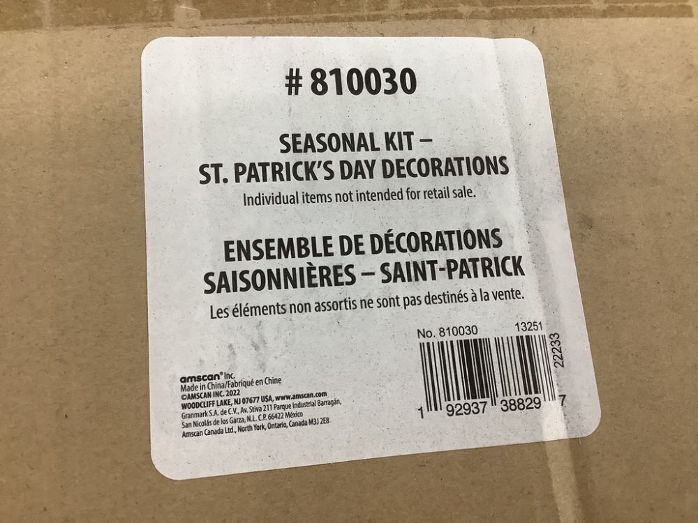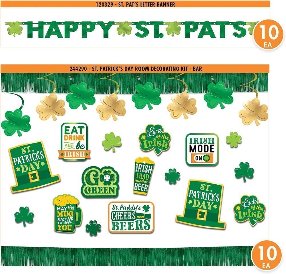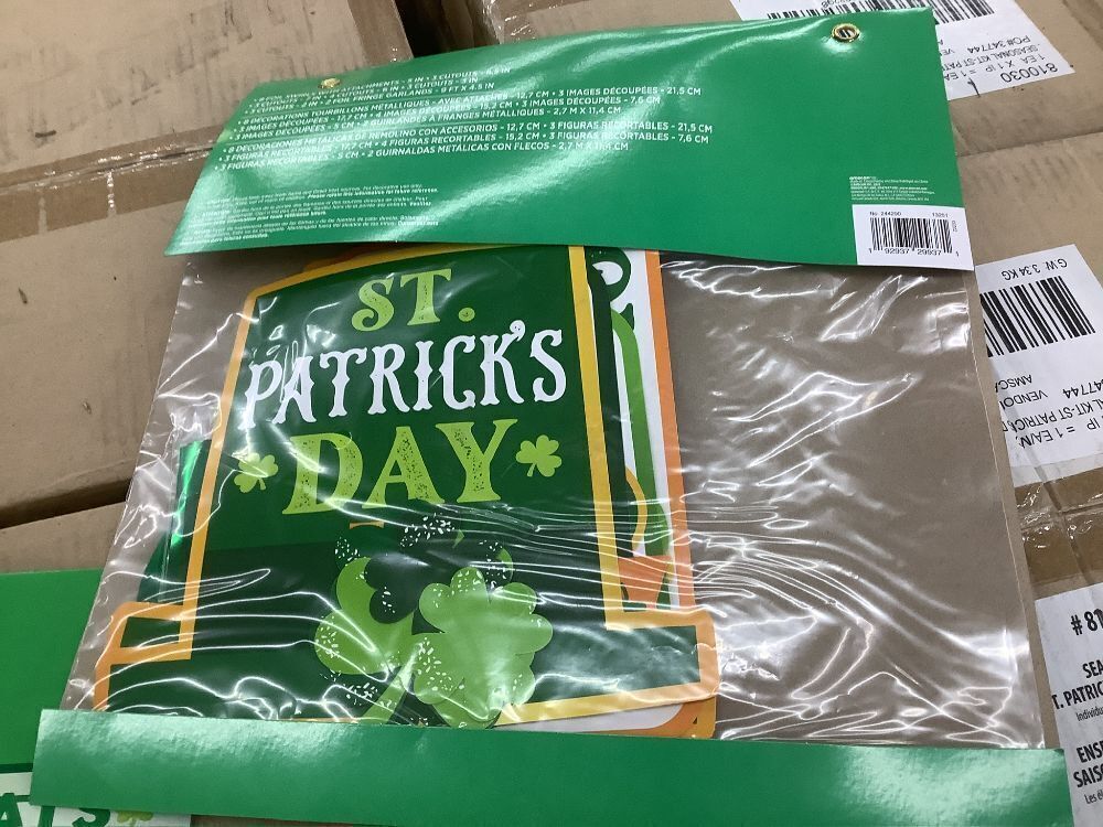 Pallet of (99) Cases of St. Patrick's Day Decorations, Each Case has 10 Banners & 10 Decorating Kits